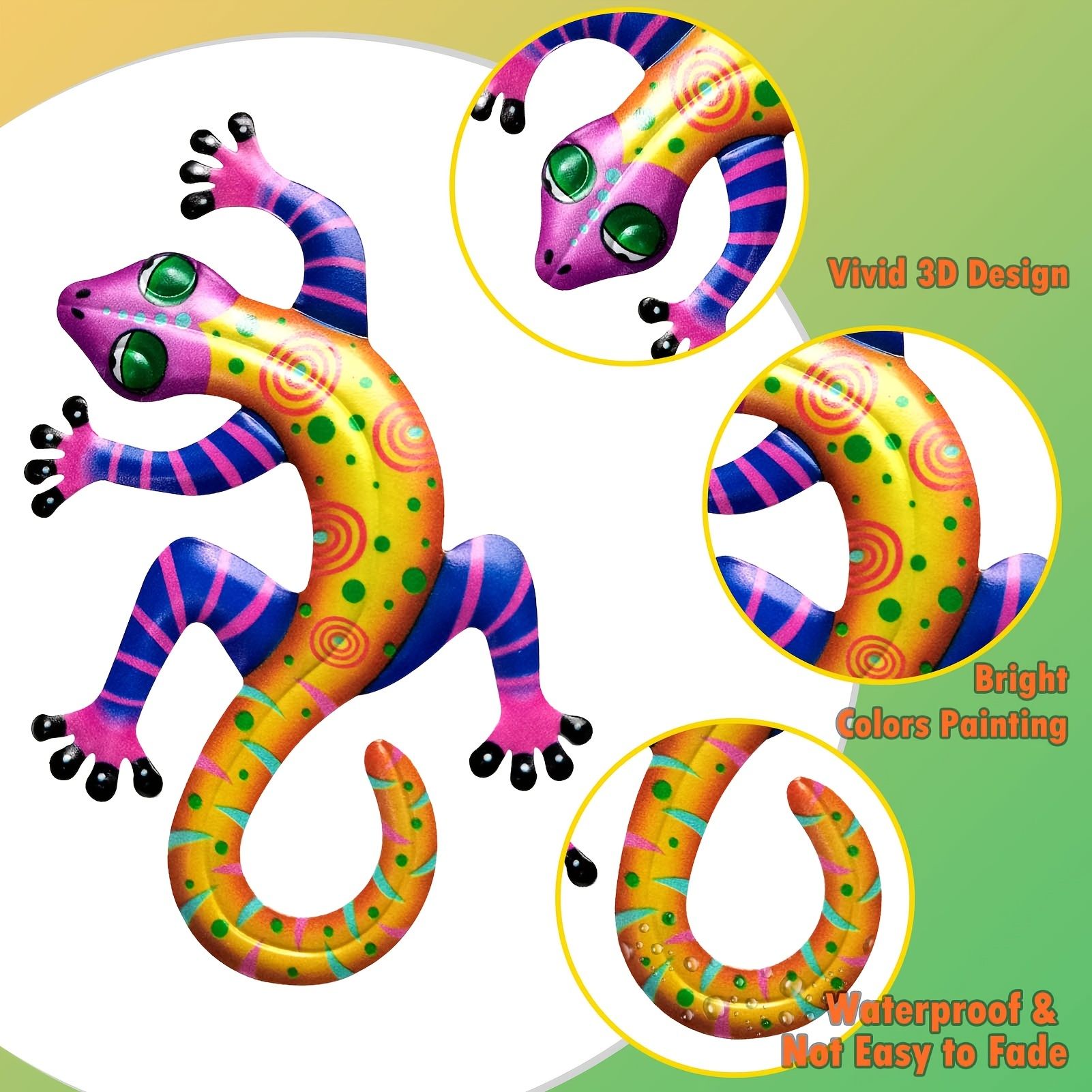 Home > 1Pc Geckos Inspiration Wall Art, Metal Colorful 3D Iron Hanging Wall Art Decor Ornaments, For Living Room Patio Balcony Fence Home Decor (6*8inch)