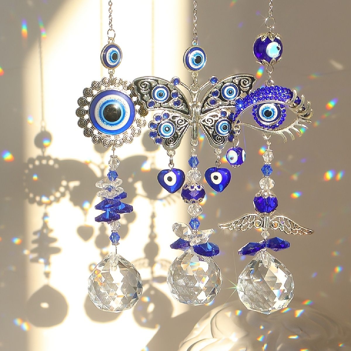 Home > 1pc Crystal Sun Catchers, Blue Butterfly Evil Eye Suncatcher Indoor Window With Prism Ball